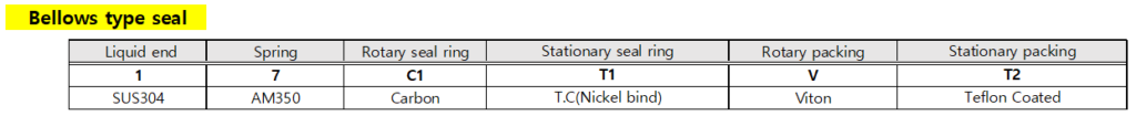 - Lip seal : 회전하는 shaft에 sealing을 목적으로 내화학성 및 내열성이 강하고 고속과 고압에도 뛰어난 PTFE 제질을 사용하여 압력, 고속, 진공에 적용되는 Seal로 자기윤활성으로 인하여 마찰계수가 낮고 내마모성이 뛰어나 Mechanical Seal 대체용으로 사용함.